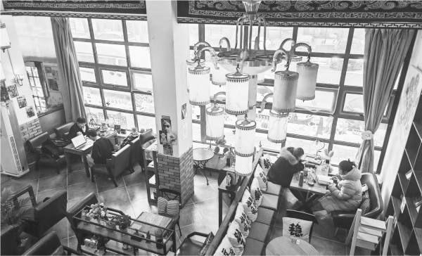 在沈阳的杏林七号咖啡书吧里,顾客可以一边阅读一边品尝咖啡。 本报记者 金晓玲 摄