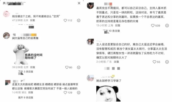 对此,有网友吐槽道:“像是误入了富太太客厅”,称其用了一种“礼貌的浅薄”,让播客成为了“客厅外交”。