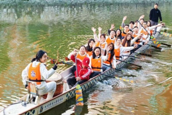 北京科技大学第十六届“励志计划”学员体验划龙舟。 受访者供图