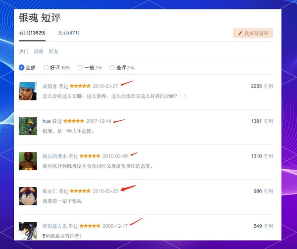 这部作品虽然小众,却深受喜爱。在豆瓣上,它曾一度以9.7的高分引领风骚,现在依然维持在9.6分。这个分数或许不及某些其他动漫,例如《海贼王》的9.5分、《名侦探柯南》的9.1分,以及《火影忍者》的8.7分,但依然彰显了其不俗的魅力。当然,分数并非衡量一切的标准,尤其是对于《银魂》这样一部独具特色的作品而言。