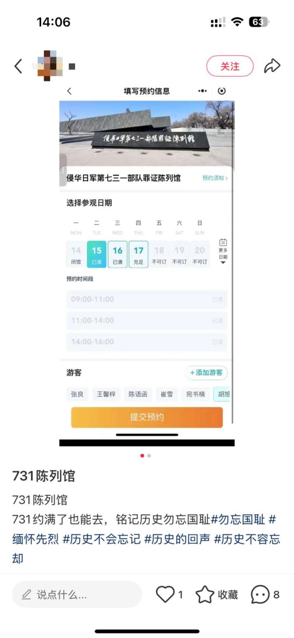 “预约已满”的731陈列馆门票竟然网上有售,官方呼吁认准正规渠道