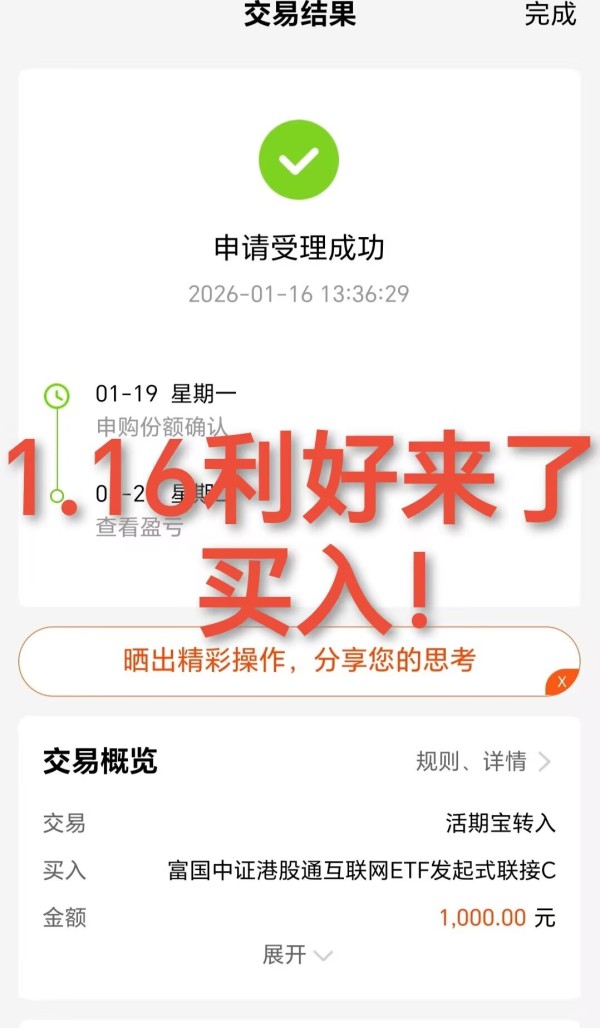 $富国中证港股通互联网ETF发起式联接C(OTCFUND|014674)$ +1000元。