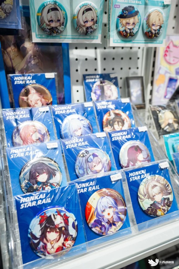 走进她如今位于吴家山中心广场的店铺,琳琅满目的二次元周边令人目不暇接。游戏类如《第五人格》《明日方舟》《恋与深空》《光与夜之恋》等热门作品的周边占据着显眼位置;动漫类则以《时光代理人》《非人哉》《罗小黑战记》等现象级番剧的衍生品为主。这些承载着高人气IP的徽章、立牌、色纸、痛包等,吸引了大量消费者驻足选购。