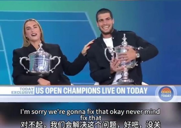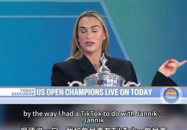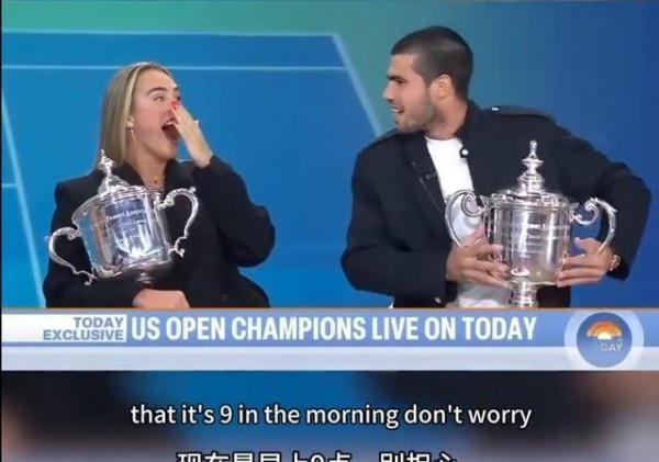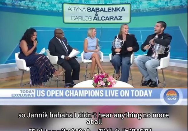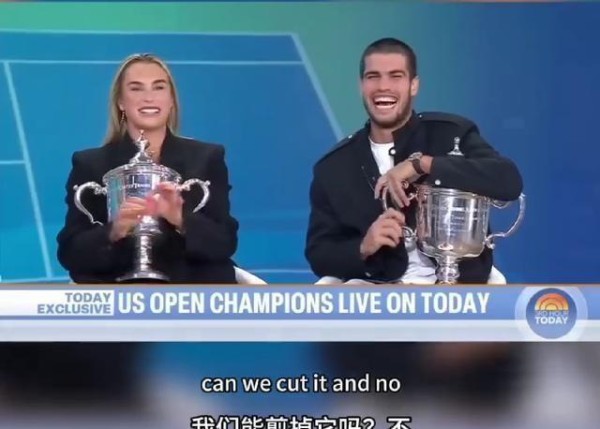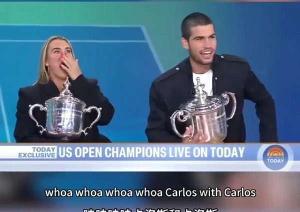 事情是这样的,节目刚开始没多久,萨巴伦卡在谈自己跟阿尔卡拉斯的TikTok关系,她当着他面直接来了句:“顺便说一句