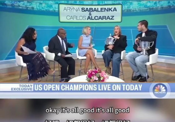 萨巴伦卡还调侃主持人,问能不能重新录一遍现场