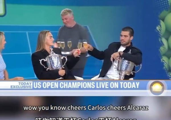 正当大家还沉浸在这段“误会”里,忽然几杯香槟被端上来,萨巴伦卡举起酒杯,冲着阿卡说:“来点香槟,干杯