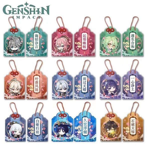 源自热门游戏《原神》的这款角色御守挂件,将游戏中的元素与日本传统护身符文化巧妙融合。散兵、万叶、胡桃等角色Q版形象搭配特色元素符号,既保留了角色的辨识度,又增添了吉祥寓意。挂件采用刺绣工艺制作,图案立体饱满,色彩鲜艳不易褪色。