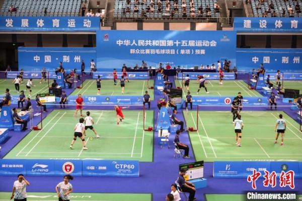 图为第十五届全运会群众比赛羽毛球项目(单项)预赛在荆州沙市开赛。(资料图)吴淘淘 摄