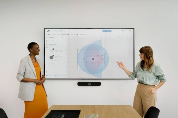在这个空间里,声学比画面更难处理。房间大小不一、装修材料五花八门、混响程度完全不受控,最常见的玻璃墙、空调位、投影机噪声,甚至是坐姿、走动都足以让拾音效果一瞬间变糊,大幅影响混合学习和办公的体验。所以,森海塞尔选择从技术底层下手,解决会议室收音这个行业基础性的难题。