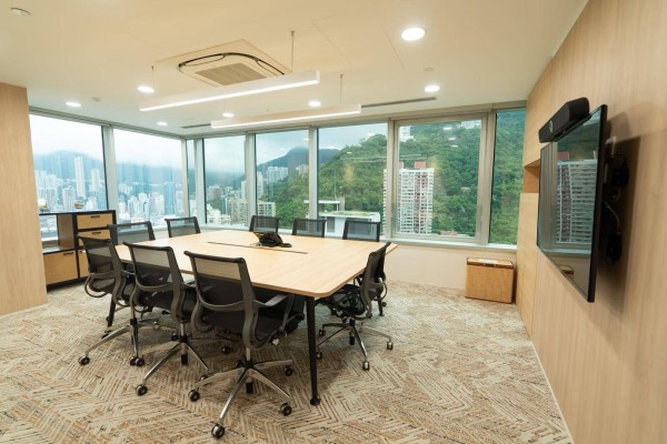 而企业侧的选择可能更具代表性。香港的轩达资讯(HeterMedia)的会议室使用方式多变,会根据不同需求调整座椅布局、合并或拆分会议室。另外,会议室的玻璃墙密度高,虽然设计美观,却也是典型的复杂声学环境。但 TCC 2 与 TC Bar M 在这里提供了一种高效且统一的解决方案: