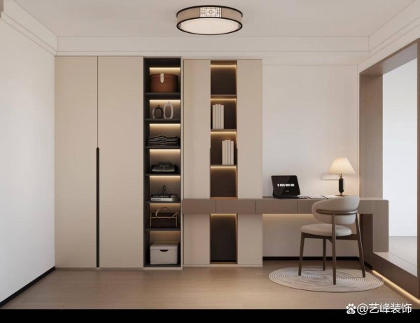 3.隐藏式收纳系统:极简并非空无一物,而是将物品妥善归置。构建顶天立地的储物柜、利用墙体厚度制作壁龛、选择带储物功能的家居等,将日常用品“藏”于无形,是实现表面整洁的关键。遵循“八分藏,二分露”的原则,只将高效美感或最常用的物品展示出来。