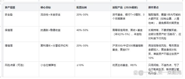 二、进阶配置:3层资产组合,稳健不缩水(核心干货)