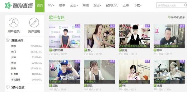 酷狗直播“歌手专区”