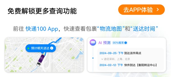 部分快递公司暂未支持在网页查询,您可前往快递100App,查询能力更全面,还可实时查看物流更新及预测包裹送达时间。