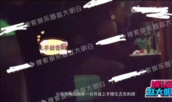 因为这个小插曲,男子也开始放松下来,在后面说话的时候,手上就“来活”了,先是抬手放在女方的胳膊上,没遭到拒绝后,便再次趁机搂到吉克隽逸的脖子上,吉克隽逸也没有反抗,顺势躺在男子的怀里,后面男子就把手向下,搂着吉克隽逸的小蛮腰,整个气氛开始变得暧昧起来。