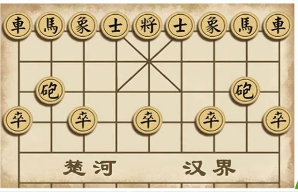 一副摆好的象棋的一方,一个棋子都还没有动。
