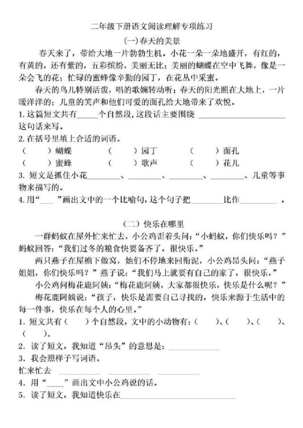 网址:二年级下册语文阅读理解专项练习,附答案 https://klqsh.com/news/view/320645