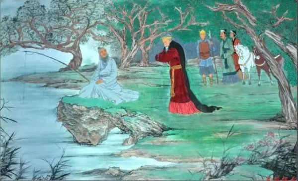 商朝末年,周文王姬昌急需一个能文能武的人来辅佐,他苦苦寻找。一天他做了一个梦,梦见一只生有双翅的异兽飞进自己的怀中。第二天他叫人占卜预示即可找到这个人,于是带领人马到渭水边找到直钩钓鱼的姜尚(也就是姜子牙),恰巧姜尚②自号飞熊,当即延入朝中,此姜尚有伊尹之能,辅弼文武两代周王,兴王师而诛无道,解倒悬而抚黎元,堪称周兴之第一功臣。