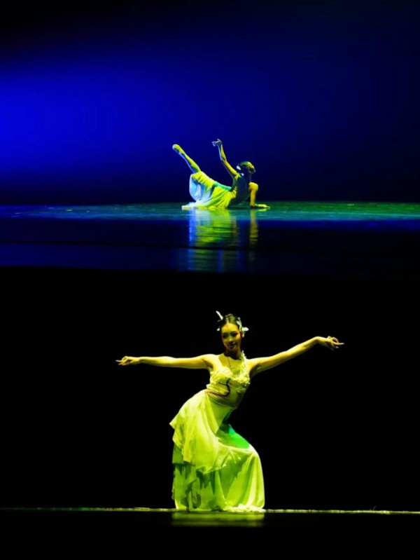 女子独舞《山海赋》由沙坪坝区文化馆舞蹈干部曾川创作。题材选自于先秦时期《山海经.西山经》中凤凰前身“青鸾”的形象。作品以 “凡身诞于天地,微渺却怀丘壑” 为核心立意,勾勒出青鸾始于尘、终于埃,却不悲自身之小,以恒志凌飞天地、以微翅翱翔山海的精神图景。舞者以灵动舒展的舞姿,诠释出 “置心怀于天地,式微而歌守” 的境界,既彰显了传统文化的深厚底蕴,更传递出坚守理想、勇毅前行的时代精神。