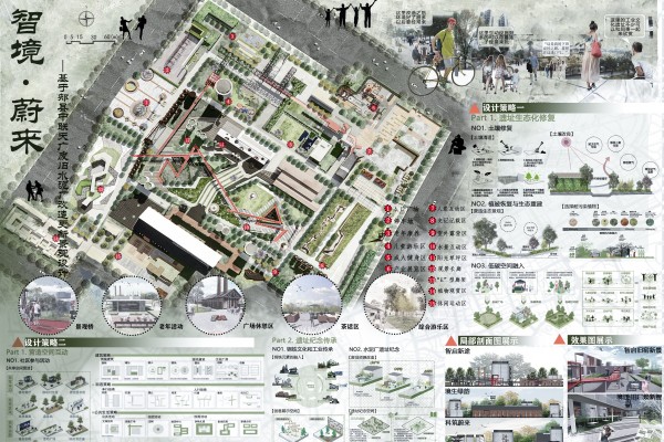 我们对场地现状进行了系统性梳理,从历史背景、文化演变、人群活动、建筑铺装等多个角度展开深入分析。基于这些研究,我们提出了“绿色智能”的设计策略,并以“智境·蔚来”为主题,致力于将生态恢复技术与人文历史相结合。通过对废旧水泥厂空间的重新设计,我们探索了工业遗址与自然环境的有机融合,旨在打造一个兼具时代感与文化传承的生态景观空间。场地内的建筑、厂房和工业设施不仅是城市历史的见证,更是文化记忆的载体。