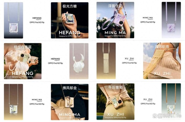 有趣的是,即便是在数码圈领域方面,我们也能观察到mini包火热的“踪迹”,大大提升着手机的时尚元素。像是舒淇、程潇、孟佳等女星的同款手机OPPO Find N3 Flip,官方与HEFANG、MING MA、XU ZHI三个时尚设计师品牌合力打造出相关的极光方糖、绽放白鸢尾等六款设计师联名款手机壳,使得手机在套上这些潮流元素拉满的手机壳后即可变身为mini包般的存在,同样是轻松驾驭着手提、肩背、斜跨等多种造型,时尚感满溢。
