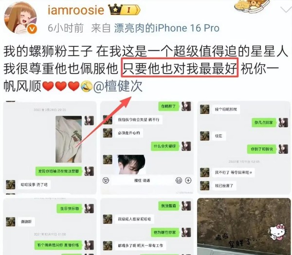 1 月 2 日深夜到 3 日凌晨,网红司晓迪密集发布二十多条爆料,提到“螺蛳粉王子”,这一昵称让不少网友立刻想到檀健次,还晒出了疑似两人的聊天记录。聊天中提及短袖留在她家、红包、约时间叙旧等细节,按照时间线当时檀健次要进组拍《长相思》,日期确实对得上。司晓迪还强调檀健次人很好,比如自己迟迟没回语音,他也不生气,还会秒回生日祝福。后来工作室发声明否认恋情,只说是朋友关系。再往后司晓迪账号被永久封禁,后续有人指出聊天记录中有大量 AI 合成痕迹,这段关系也就更显扑朔。