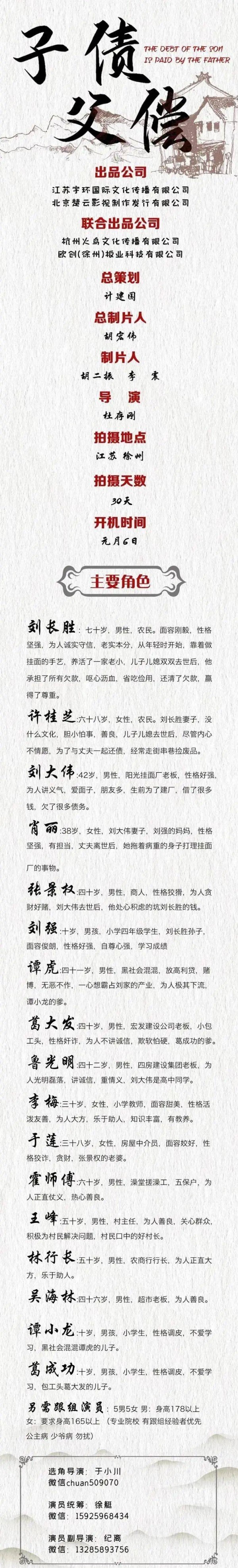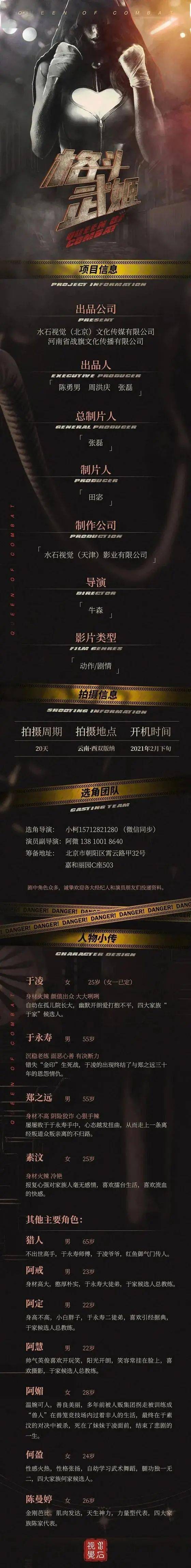 剧中角色众多,诚挚欢迎各大经纪人和演员朋友们投递资料。