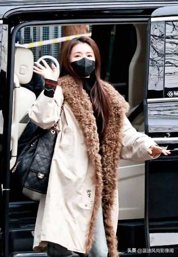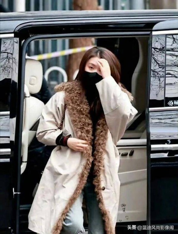 最妙的是版型,不是紧绷的修身款,是稍微宽松的直筒型,她走起来的时候衣摆轻轻扫过裤脚,没有刻意挺胸抬头,却透着越剧舞台上那种 “立得稳” 的气场 —— 后来想起她演穆桂英时穿红靠的英气,再看这大衣里藏的从容,才懂这种 “柔中带刚” 不是装的,是常年舞台练出来的风骨。
