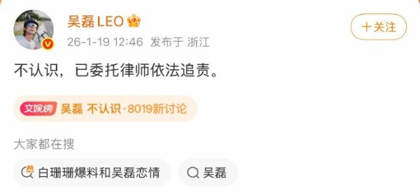 女网友自称有吴磊床照 吴磊工作室发声明辟谣