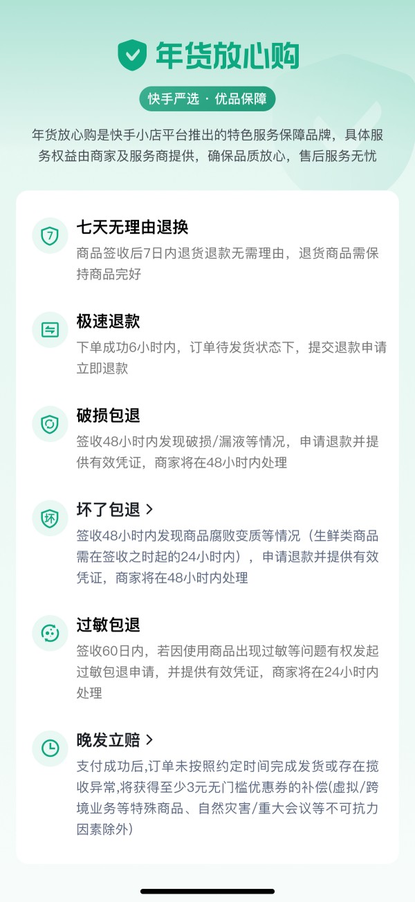 “年货放心购”是快手电商为年货节量身打造的官方信任标识,旨在满足消费者在年货采购期间对商品品质、物流时效、售后服务的更高要求。