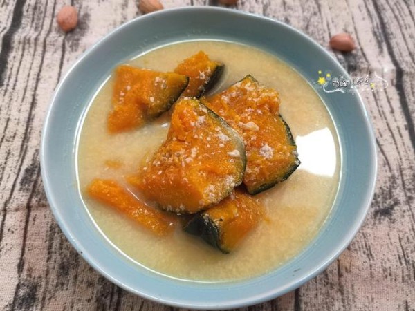 1,南瓜1块,花生半碗放入料理机,加水打成花生碎,倒入锅里大火烧开,改小火煮到花生软烂即可加盐调味。