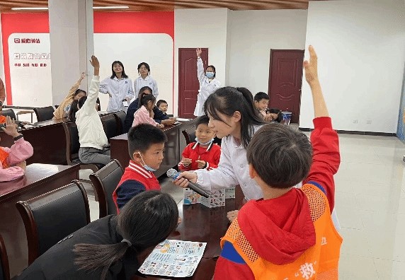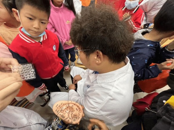 本活动内容主要有“眼睛基本常识科普”、“视力表检查视力”、“规范眼保健操动作”、“耳穴埋豆介绍”。同学们将医学知识理论与日常生活实例相结合,通过PPT展示、现场实操、游戏互动、设问设答等方式向社区青少年介绍了保护自己眼睛的重要性。同时引入了中医传统文化--耳穴埋豆,向家长们介绍了保护眼睛的耳部穴位,讲解耳穴埋豆的操作步骤,并指导小朋友们进行操作演示。活动得到了学生、家长和社区工作人员的一致好评。