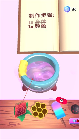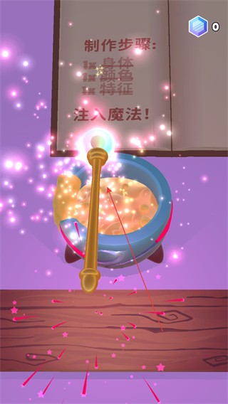 搅动魔法锅里的材料,静待进度条走完,推动颜色部分的制作流程。