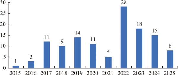 Figure 1. Number of large-sample RCTs on traditional Chinese medicine treatment and prevention of pediatric asthma in the past 10 years
