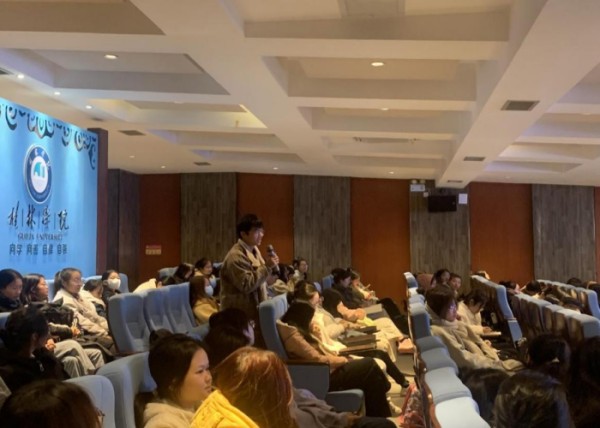 为进一步推进我校学前教育优势特色专业建设,提升学前教育专业学生对幼儿保育知识的深入理解,更好提高保育技能,11月15日上午,教育学院邀请桂林市妇幼保健院的护理专家团队开展题为《婴幼儿常见疾病的预防与护理》的“医教结合”讲座。学前教育何子璇老师主持讲座,2021级、2022级学前教育全体学生聆听讲座。