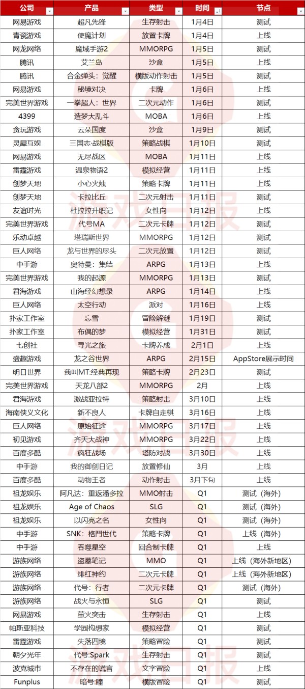 综合各家公司的反馈以及小米游戏中心等渠道上的信息,游戏日报整理出了2023年Q1重点游戏公司的总计50款新游动作。由于部分游戏还未获得版号,不少公司都表示“没有版号的计划都不是计划”、“到很明确了才能公开”,因此Q1或许也会出现部分拿到版号后突然官宣即将上线的新游。以下为具体情况: