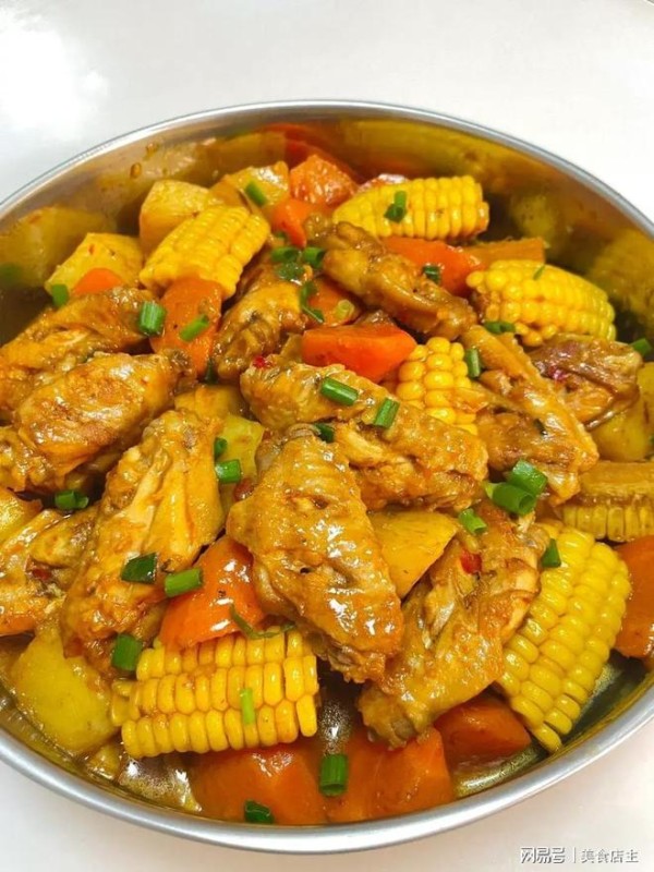 准备食材:鸡中翅,玉米,胡萝卜,土豆,姜丝,蒜末,葱花。