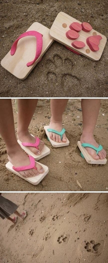 这真不是狗爪印,这是小朋友的脚印。日本 Kukkia 工作室设计了这些木屐。当你走在沙滩上,身后留下的却是动物的脚印,是不是很有趣呢?www.510fs.cn