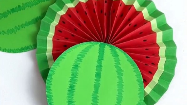 给孩子做一个可爱的西瓜折纸扇吧,他一定会喜欢的!