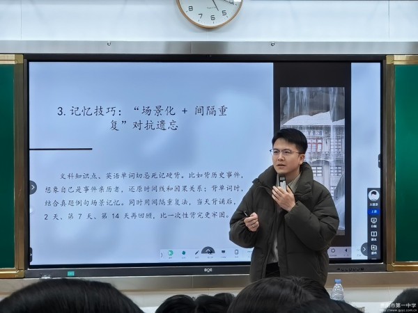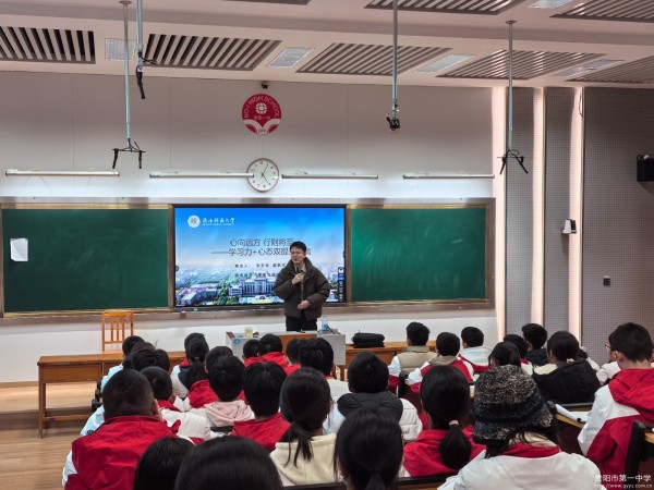 12月25日,贵阳一中“美好教育大讲堂之名师进名校”系列活动再启新篇。本次活动由高一年级副组长陶蕾老师主持,高一9班、11班学生齐聚高一四楼阶梯教室,共同聆听陕西师范大学李玉栋副教授带来的“心向远方 行则将至——学习力+心态双提升指南”专题讲座。讲座紧扣高中学习核心痛点,为学子们纾解困惑送上了一份实用“成长礼包”。