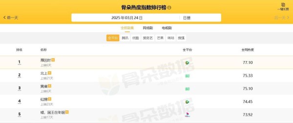 截至撰写时刻,依据“骨朵热度指数排行榜”的数据展现,当前正热播的电视剧里,全网热度排名前五的作品依次为: