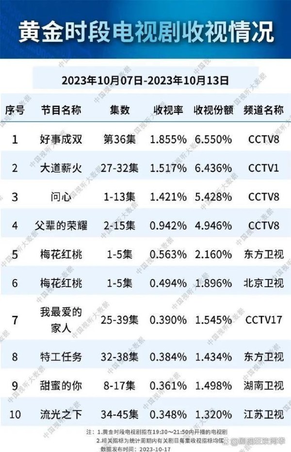 电视剧收视率排行榜,《繁花》跌至第二,第一收视高达2.501%