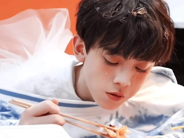 别人吃饭是细嚼慢咽,而一不注意的张真源已经从桌子东边吃到了西边。