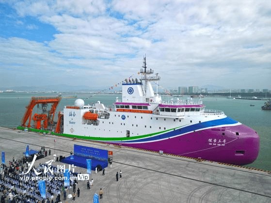 “探索三号”是一条可保障深远海科学考察、载人深潜、工程作业、水下考古、快速响应等多用途的 新型破冰船。(时政来源:新华网)