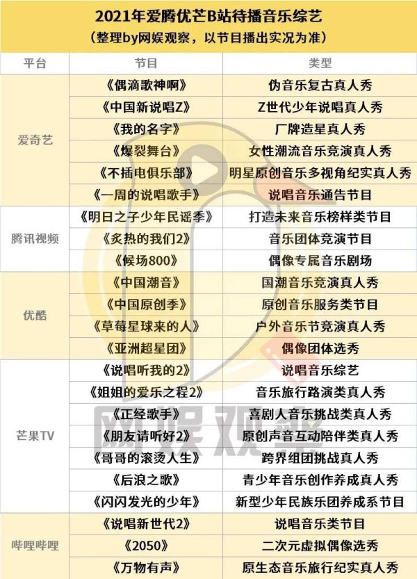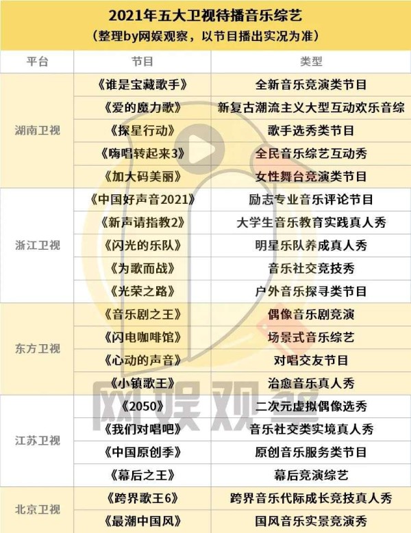 44档音综拓宽圈层,卫视和网播平台打响2021音乐之战