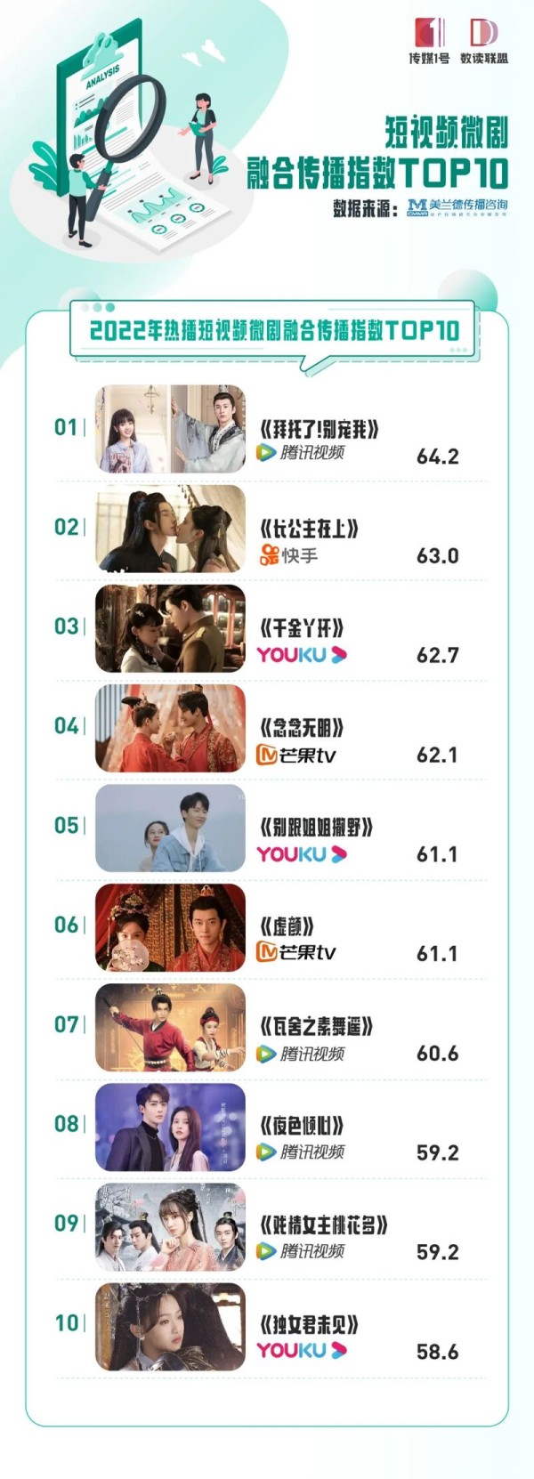 短视频微剧融合传播指数TOP10: