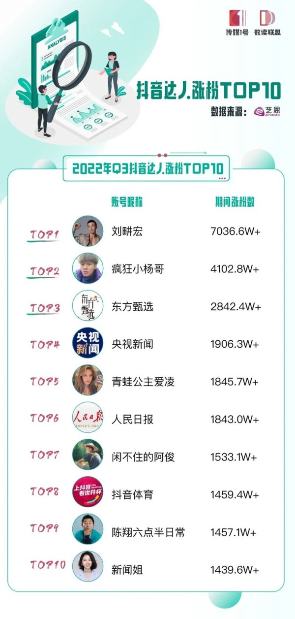 抖音达人涨粉TOP10: