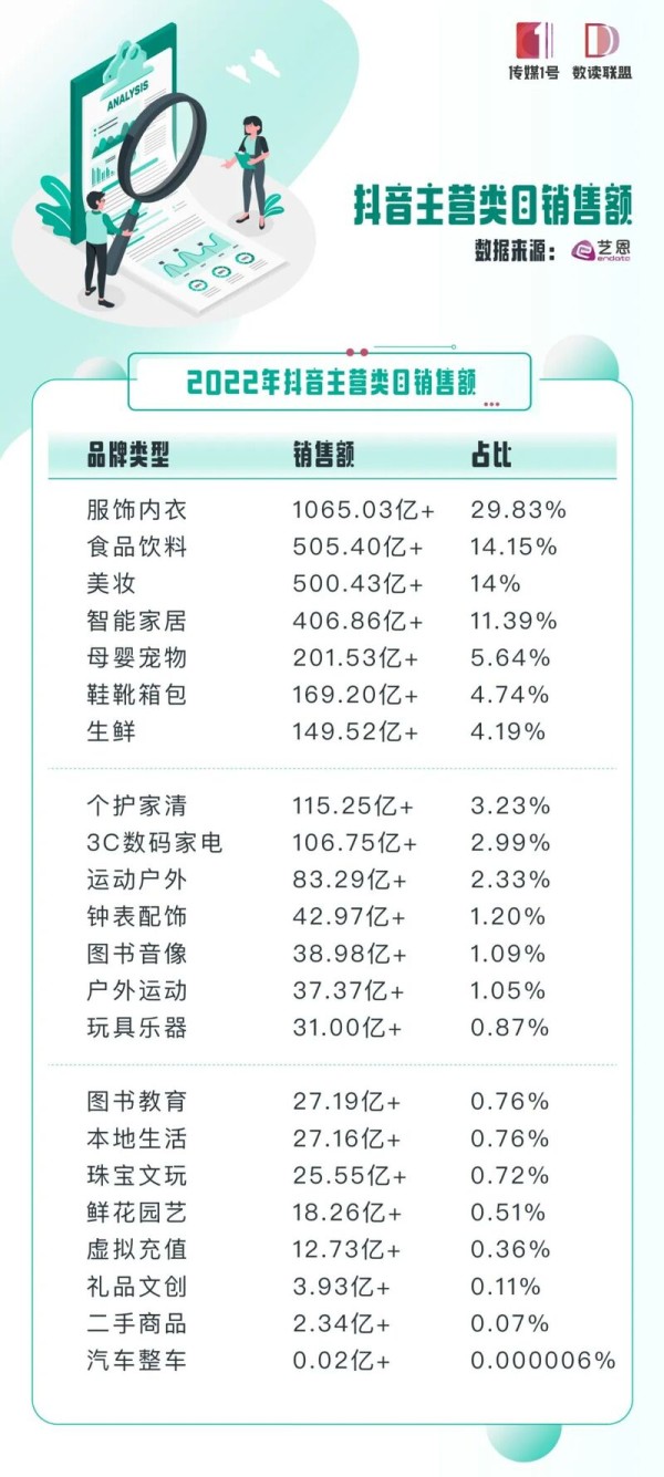 抖音主营类目销售额排名: