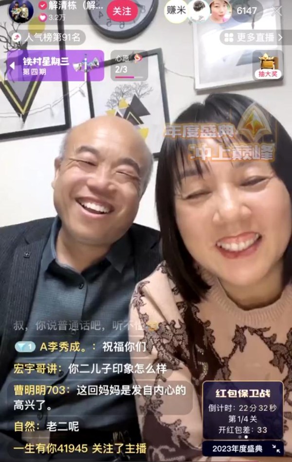 “非常感谢大家对我们家的关注和祝福,我们也希望有更多寻子家庭,能够顺利找到自己的孩子。”12月6日晚,河北寻子富豪解克锋和妻子、大儿子等一起接受封面新闻专访,在快手平台开启直播。直播中,解克锋和家人回应了网友的热切关注,分享了被拐25年的二儿子解清帅与家人团圆后的情况,并讲述了寻亲成功背后的艰难路程。直播间内,“恭喜一家人团圆”“祝愿家庭幸福安康”“希望更多寻亲人找到家人”等暖心弹幕不断。