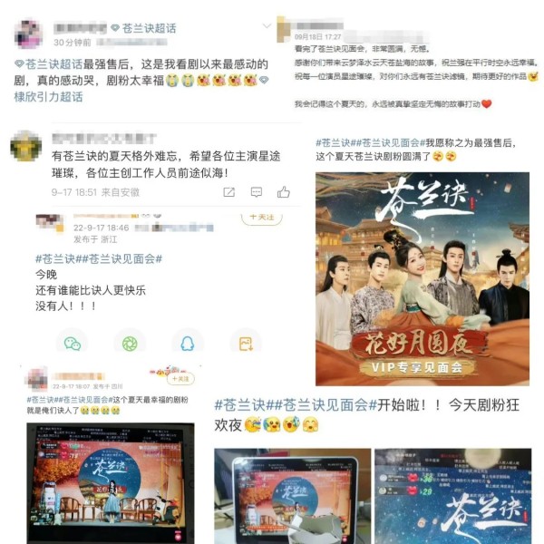 追剧时,很多“诀人”的遗憾是没看到小兰花戴上凤冠。活动上,爱奇艺特意安排了主创全员佩戴花环凤冠仪式,弥补了剧中遗憾。社交平台上,爱奇艺VIP会员们纷纷表示“看完了苍兰诀见面会,非常圆满,无憾。我会记得这个夏天的,永远被真挚坚定无悔的故事打动。”“有苍兰诀的夏天格外难忘,希望各位主演星途璀璨,各位工作人员前途似海。”“苍兰宇宙,不说再见。”
